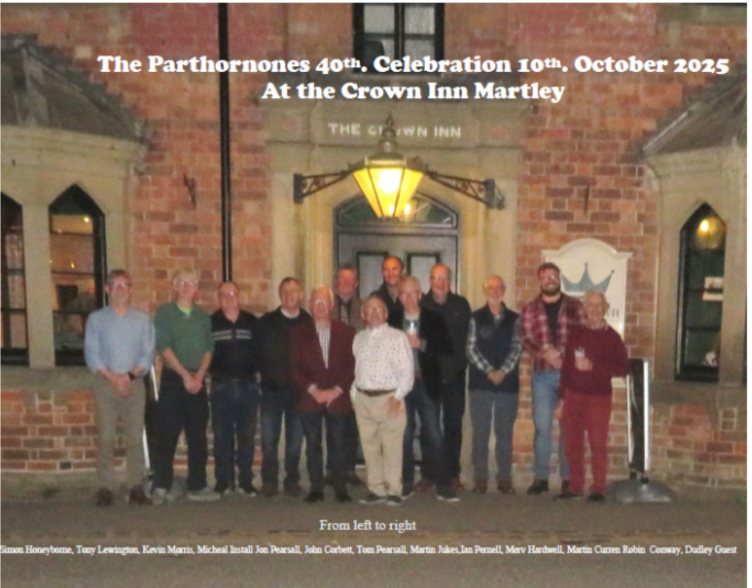 40 years later, The Path-or-Nones are still going strong with a new leader in Jon Pearsall, supported by 14 group members & of course very understanding partners. Jon, his brother Tom Pearsall & John Corbett were involved with the volunteer group startup in 1985 with Keith Trumper & are still working on the Martley footpaths today, which has to be said is an amazing achievement. On the 10* October 2025, this milestone anniversary of maintaining the footpath network was celebrated at The Crown Martley, hosted by Robin Conway & his team. Group members attended with their partners, the Wichenford volunteer group “Wichways” & partners with Lin Stansfeld their Parish Paths Warden, Karen Metcalfe the Parish Paths Warden for Shelsley Beauchamp & special guests from the local community.